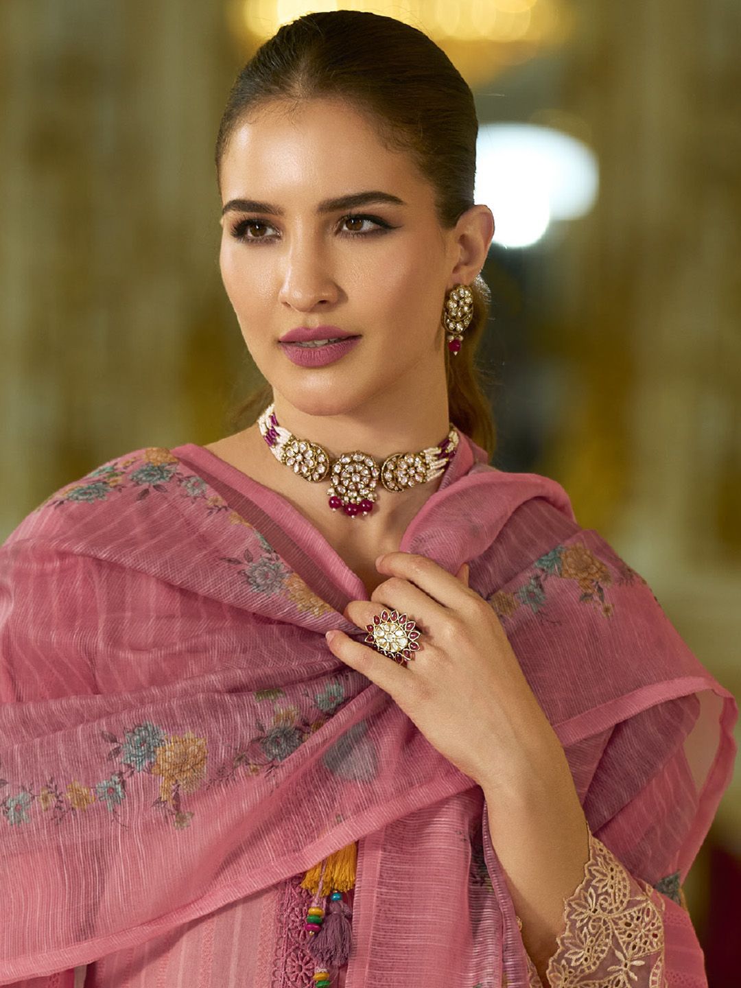 Pink, Blue, Yellow Embroidered Kurta with Trouser