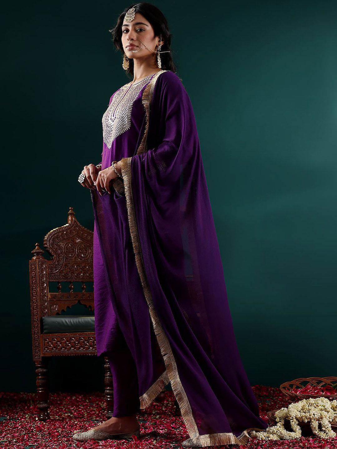Dhiyona VA Women's Floral Embroidered Regular Chanderi Silk Kurta with Trousers & With Dupatta