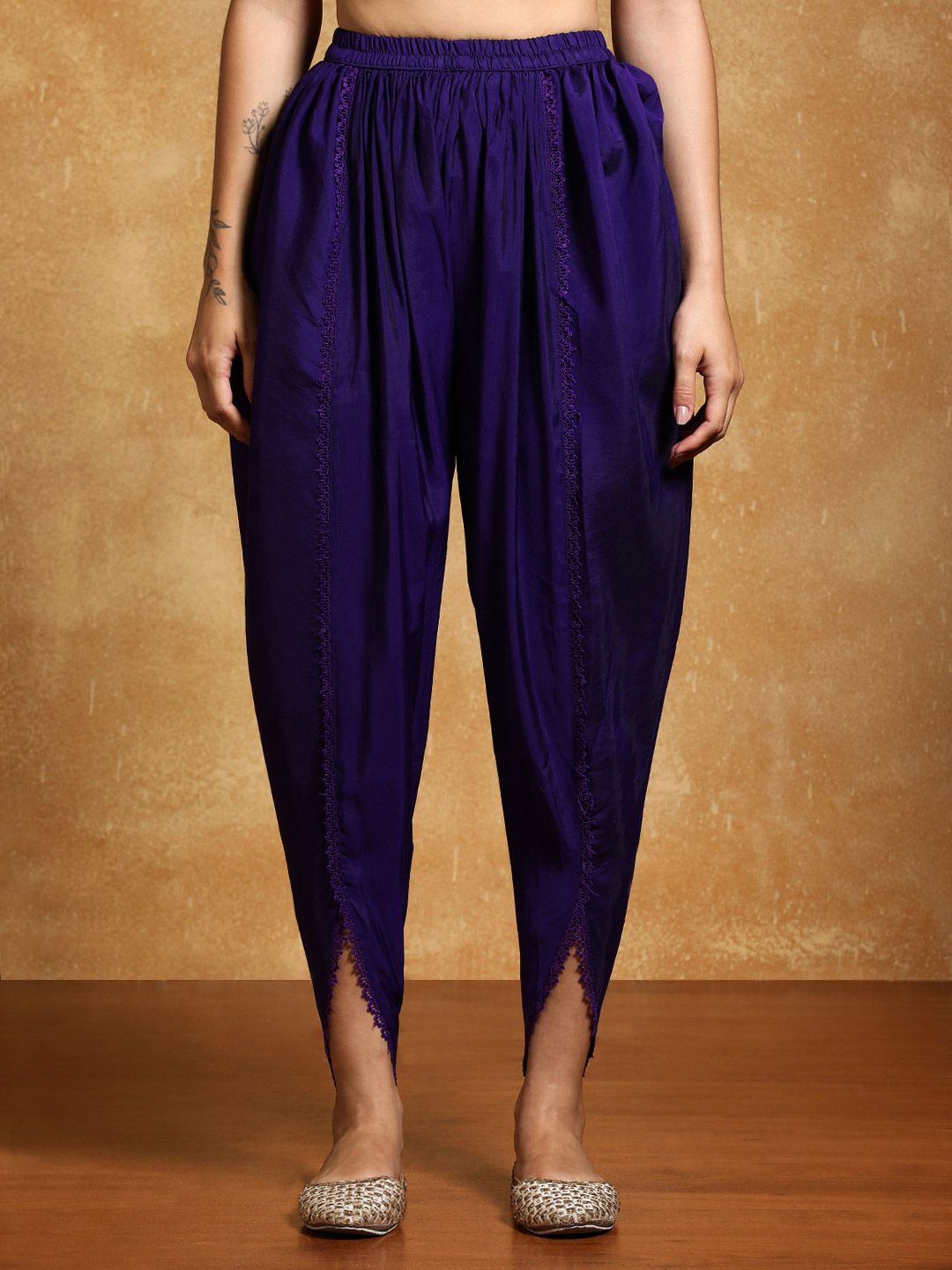 Purple embroidered Kurta with Dhoti Pants with dupatta