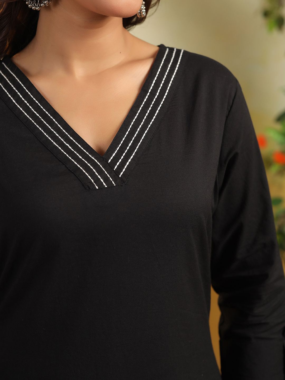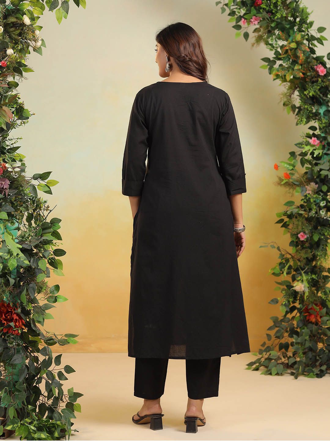 Dhiyona VA Women's Floral Embroidered Regular Sequinned Pure Cotton Kurta with Trousers