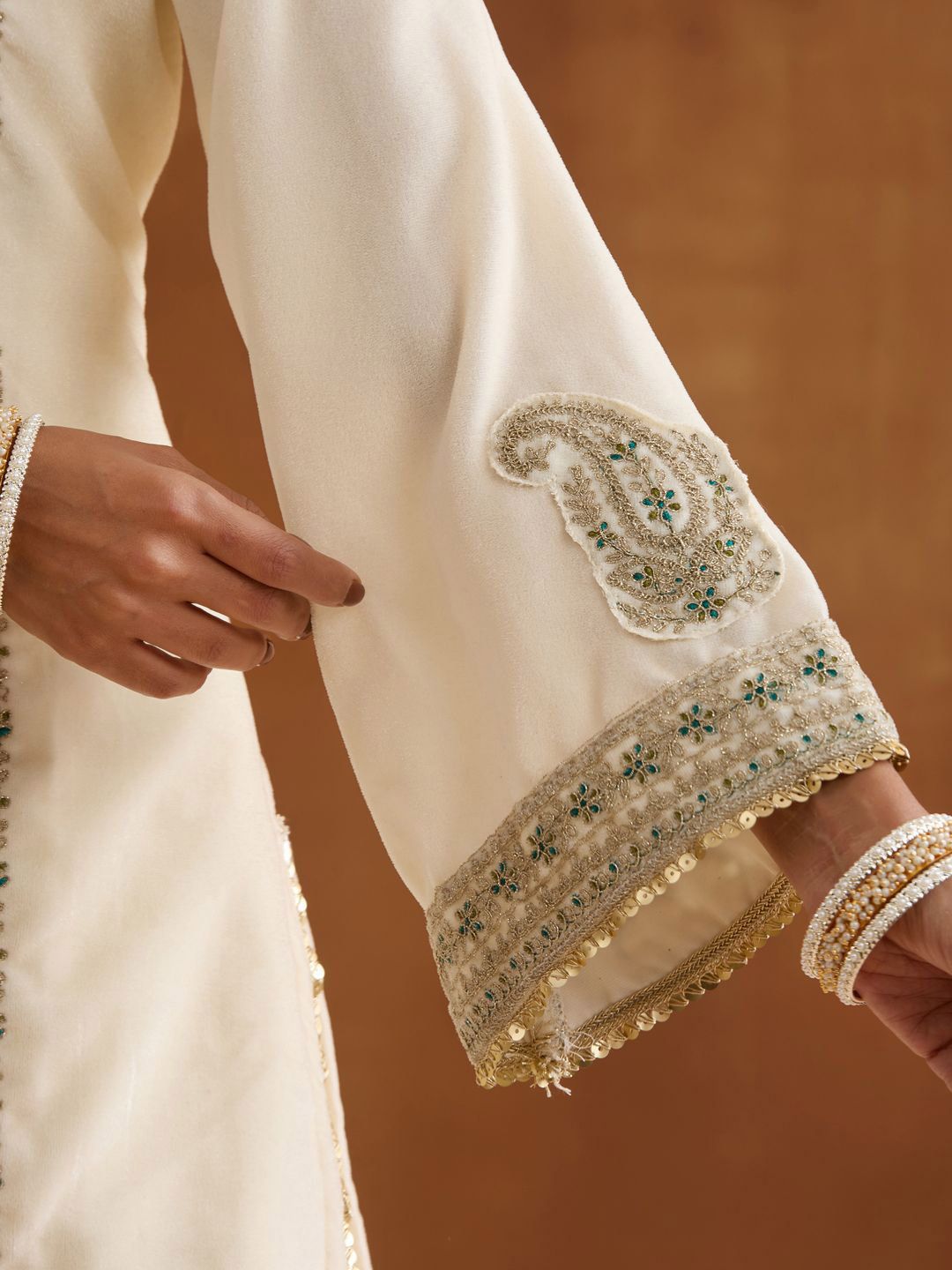 Dhiyona IS Women's Women Floral Embroidered Regular Thread Work Velvet Kurta with Trousers