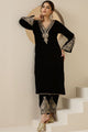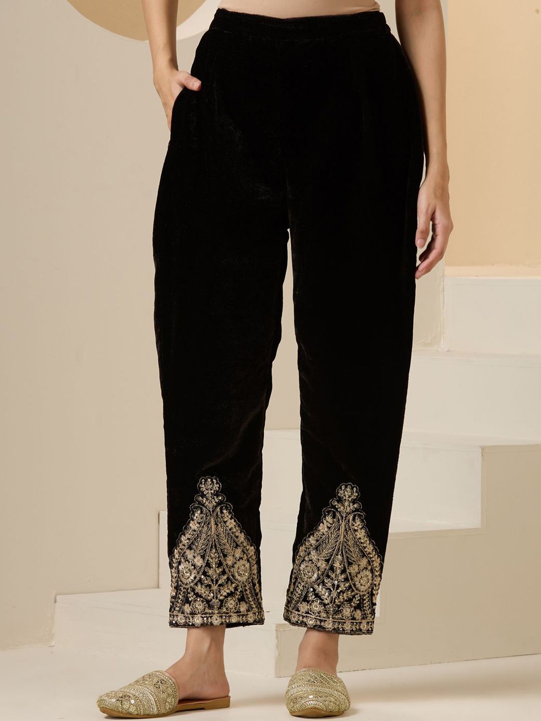 Dhiyona IS Women's Women Floral Embroidered Regular Thread Work Velvet Kurta with Trousers