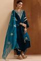 Dhiyona IS Women's Women Floral Embroidered Regular Thread Work Velvet Kurta with Trousers & With Dupatta