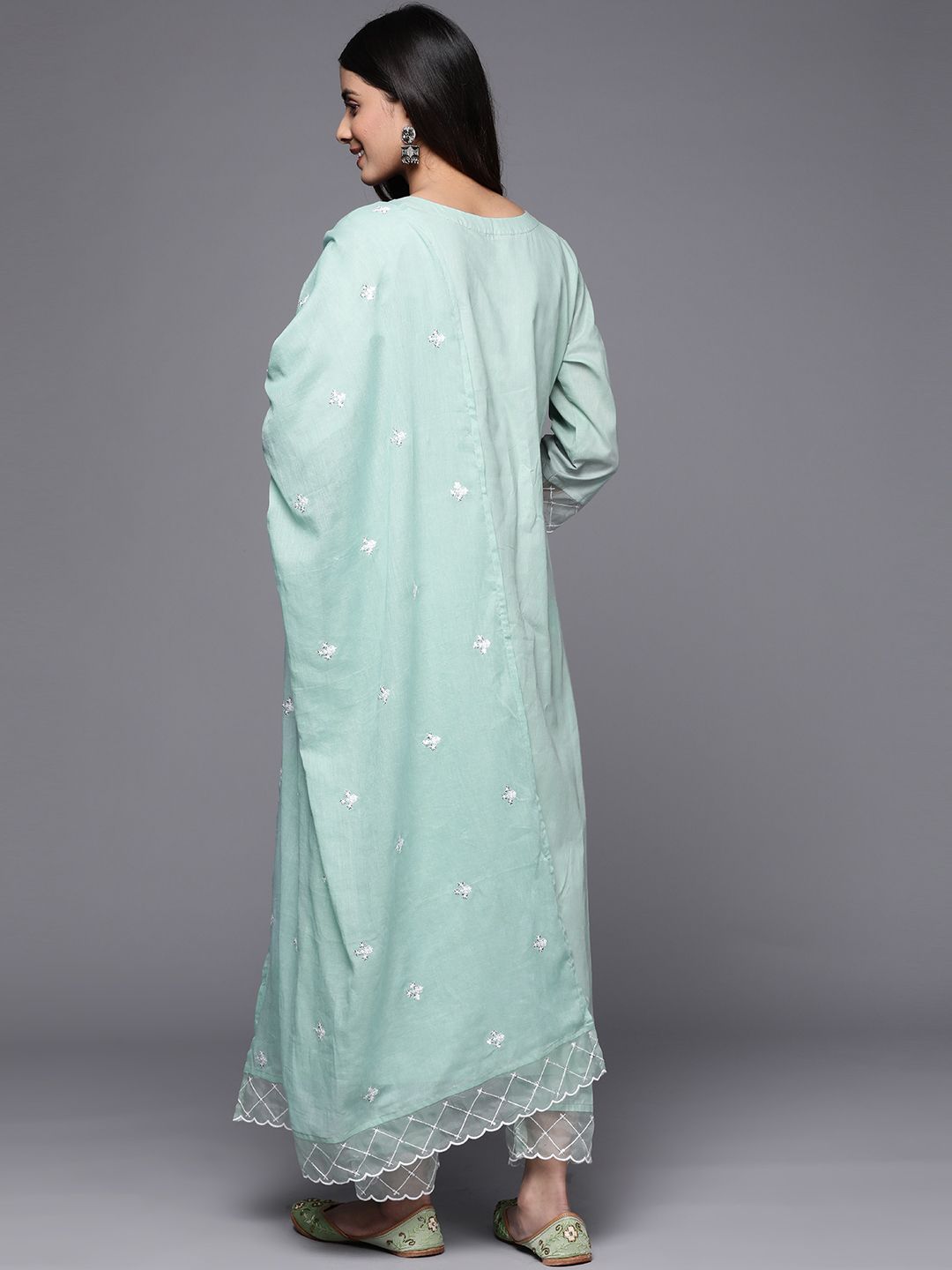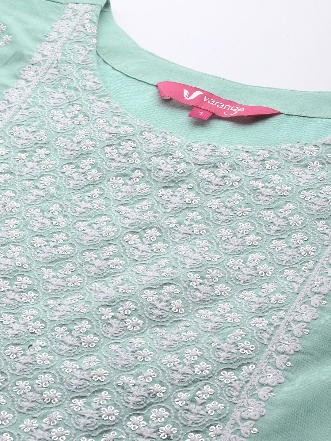 Dhiyona VA Women's Floral Embroidered Sequinned Pure Cotton Kurta Set