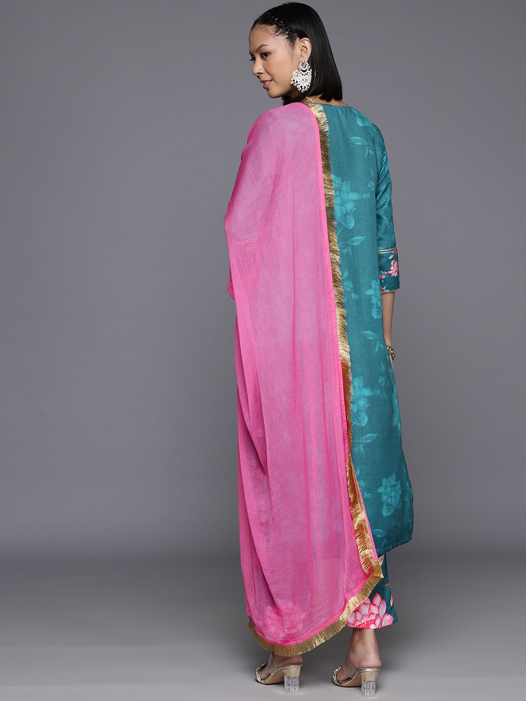 Dhiyona VA Women's Floral Printed Regular Gotta Patti Kurta with Trousers & Dupatta