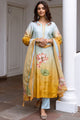 Blue printed Kurta with Trousers with dupatta