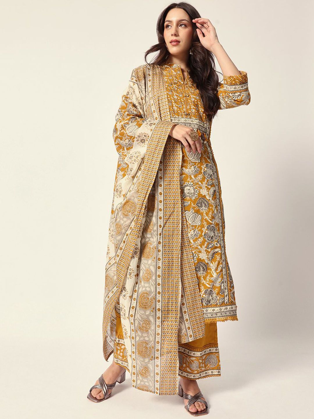 Dhiyona IS Women's Women Floral Printed Regular Pure Cotton Kurta with Trousers & With Dupatta