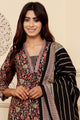 Black printed Kurta with Trousers with dupatta