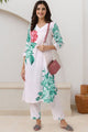Off white , green and red printed kurta with trousers