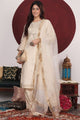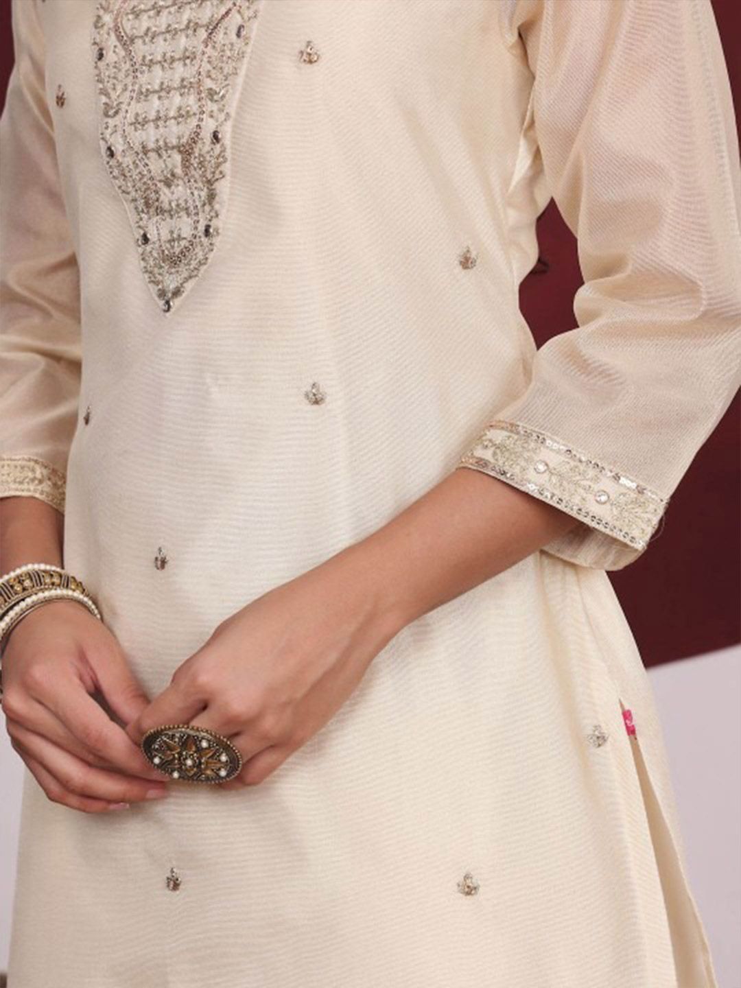 Cream-coloured woven design Kurta with Trousers with dupatta