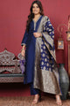 Dhiyona VA Women's Floral Zari Embroidered Neck Kurta with Trousers and Woven Brocade Dupatta