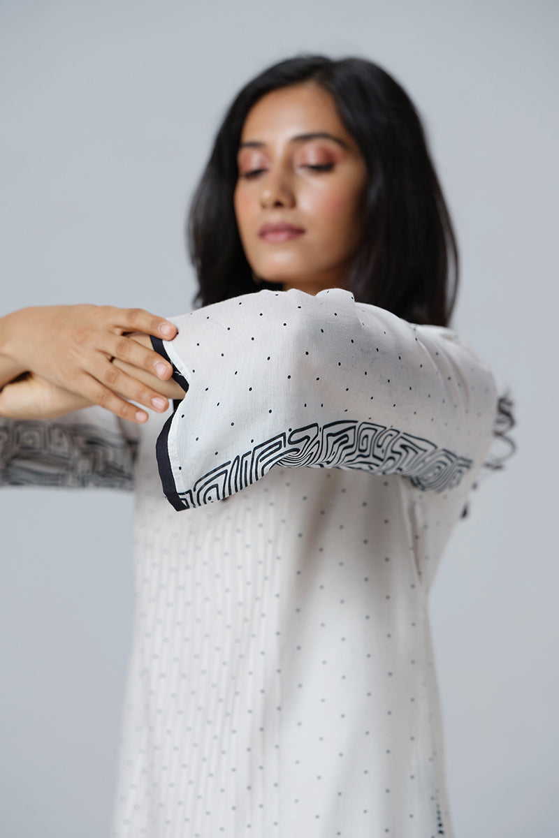 Women's Gardenia Cream And Black Bemberg Silk Co-ord Set