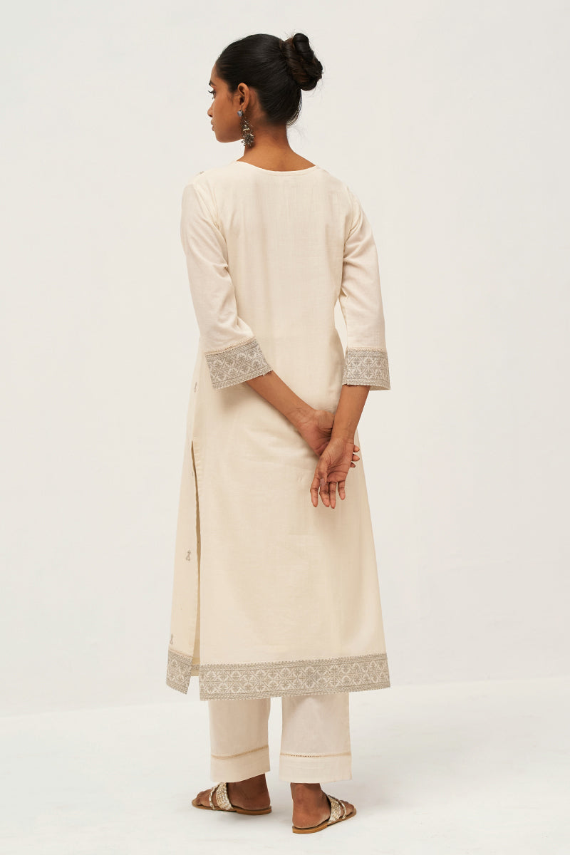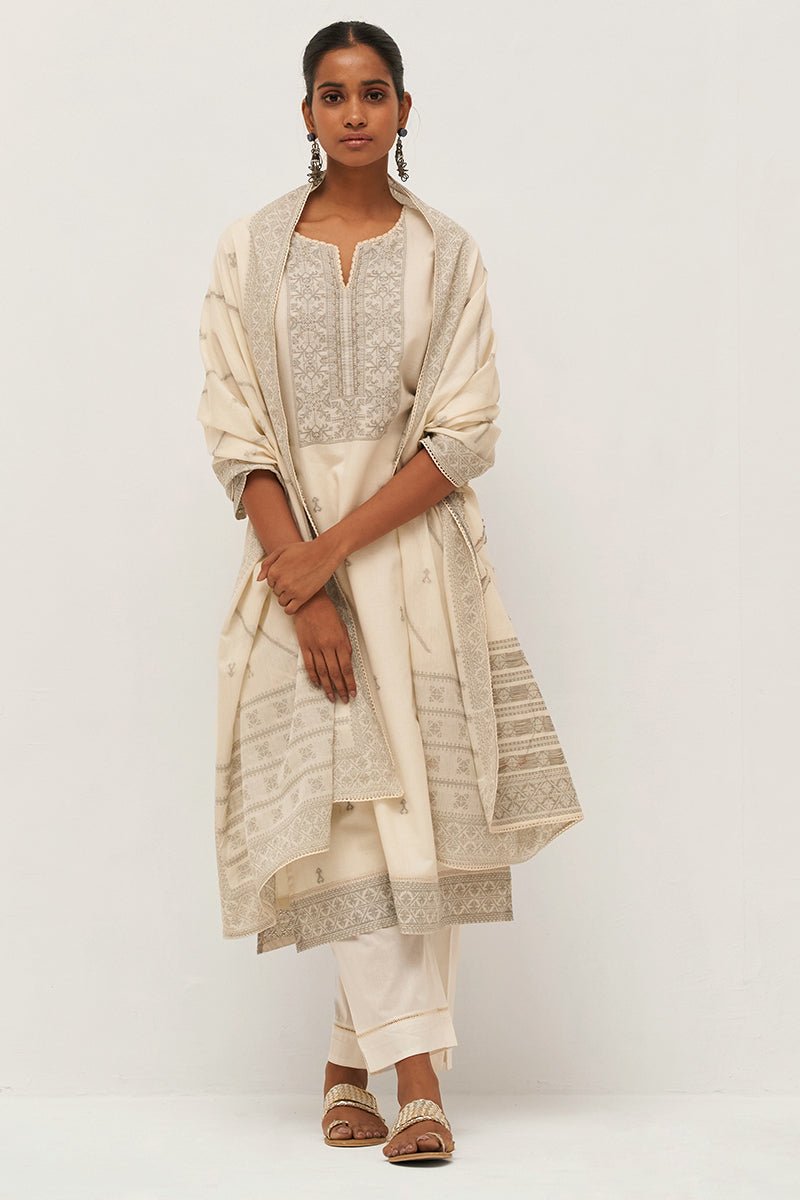 Women's Gardenia Cream Woven Cotton Salwar Suit With Hand Embellishment