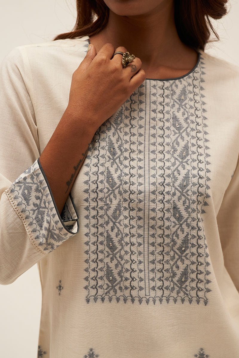 Women's Gardenia Cream Woven Cotton Salwar Suit With Hand Embellishment