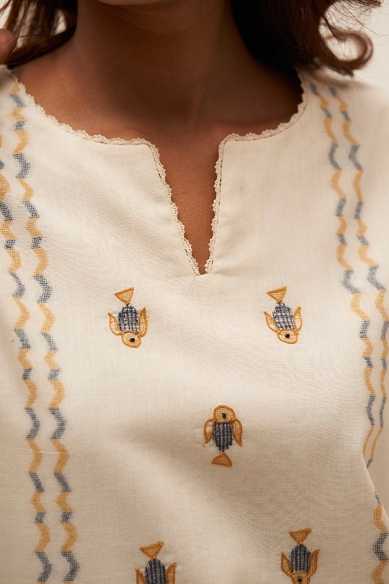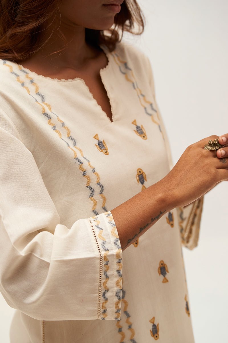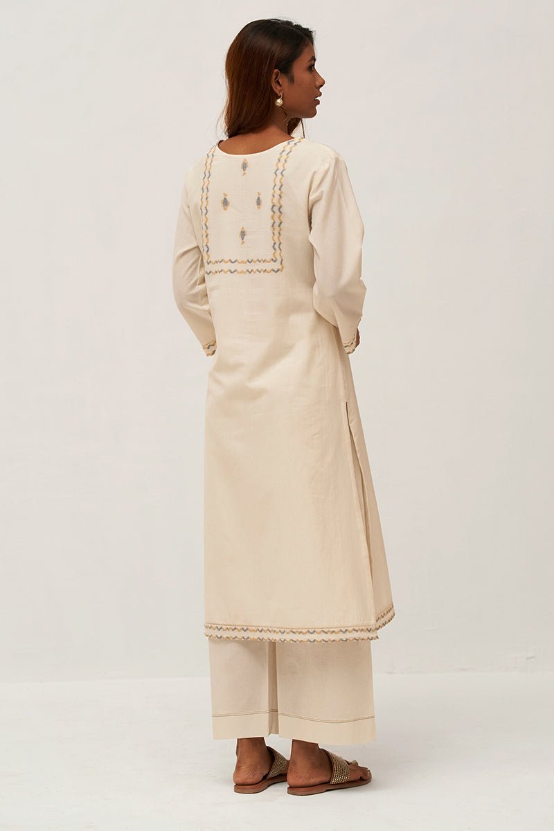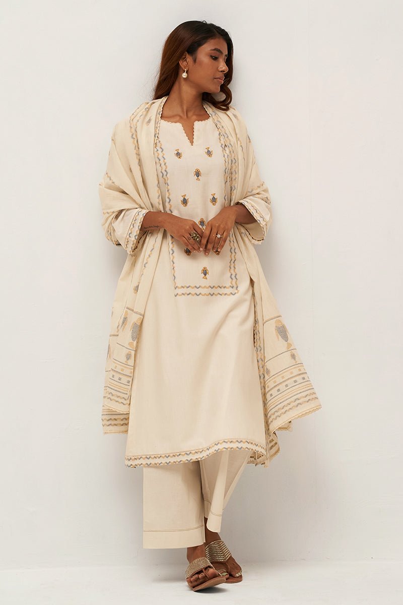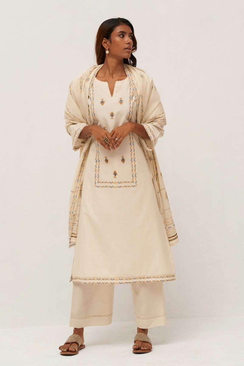 Women's Gardenia Cream Woven Cotton Salwar Suit With Hand Embellishment
