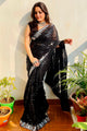 Women's Georgette Black Embellished Designer Saree With Blouse Piece