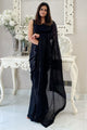 Women's Georgette Black Embellished Designer Saree With Blouse Piece