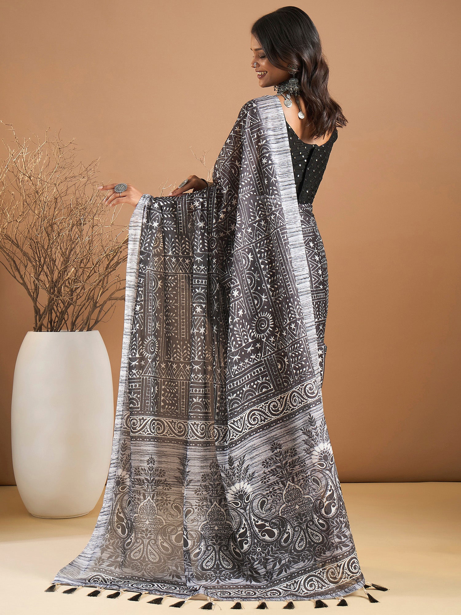 Women's Georgette Black Printed Designer Saree With Blouse Piece