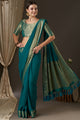 Women's Georgette Blue Woven Design Designer Saree With Blouse Piece
