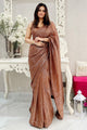 Women's Georgette Brown Embellished Designer Saree With Blouse Piece