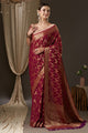 Women's Georgette Burgundy Woven Design Designer Saree With Blouse Piece