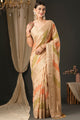 Women's Georgette Cream Woven Design Designer Saree With Blouse Piece