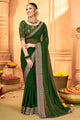 Women's Georgette Green Embellished Designer Saree With Blouse Piece