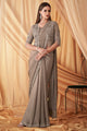 Women's Georgette Grey Embellished Designer Saree With Blouse Piece