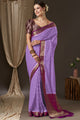 Women's Georgette Lavendar Woven Design Designer Saree With Blouse Piece