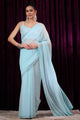Women's Georgette Light Blue Embellished Designer Saree With Blouse Piece