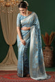 Women's Georgette Light Blue Woven Design Designer Saree With Blouse Piece