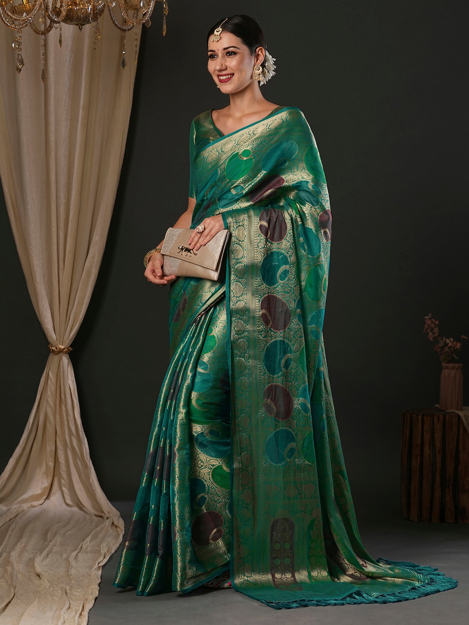 Women's Georgette Light Blue Woven Design Designer Saree With Blouse Piece