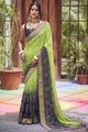 Women's Georgette Light Green Embellished Designer Saree With Blouse Piece