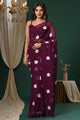 Women's Georgette Magenta Embroidered Designer Saree With Blouse Piece