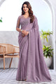 Women's Georgette Mauve Embellished Designer Saree With Blouse Piece