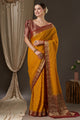 Women's Georgette Mustard Woven Design Designer Saree With Blouse Piece
