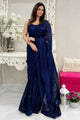 Women's Georgette Navy Blue Embellished Designer Saree With Blouse Piece