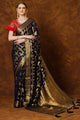 Women's Georgette Navy Blue Woven Design Designer Saree With Blouse Piece
