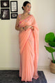 Women's Georgette Peach Embellished Designer Saree With Blouse Piece