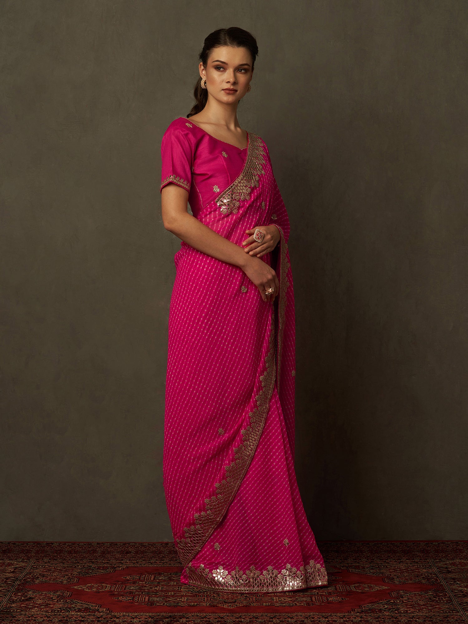 Women's Georgette Pink Embellished Designer Saree With Blouse Piece