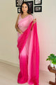 Women's Georgette Pink Embellished Designer Saree With Blouse Piece