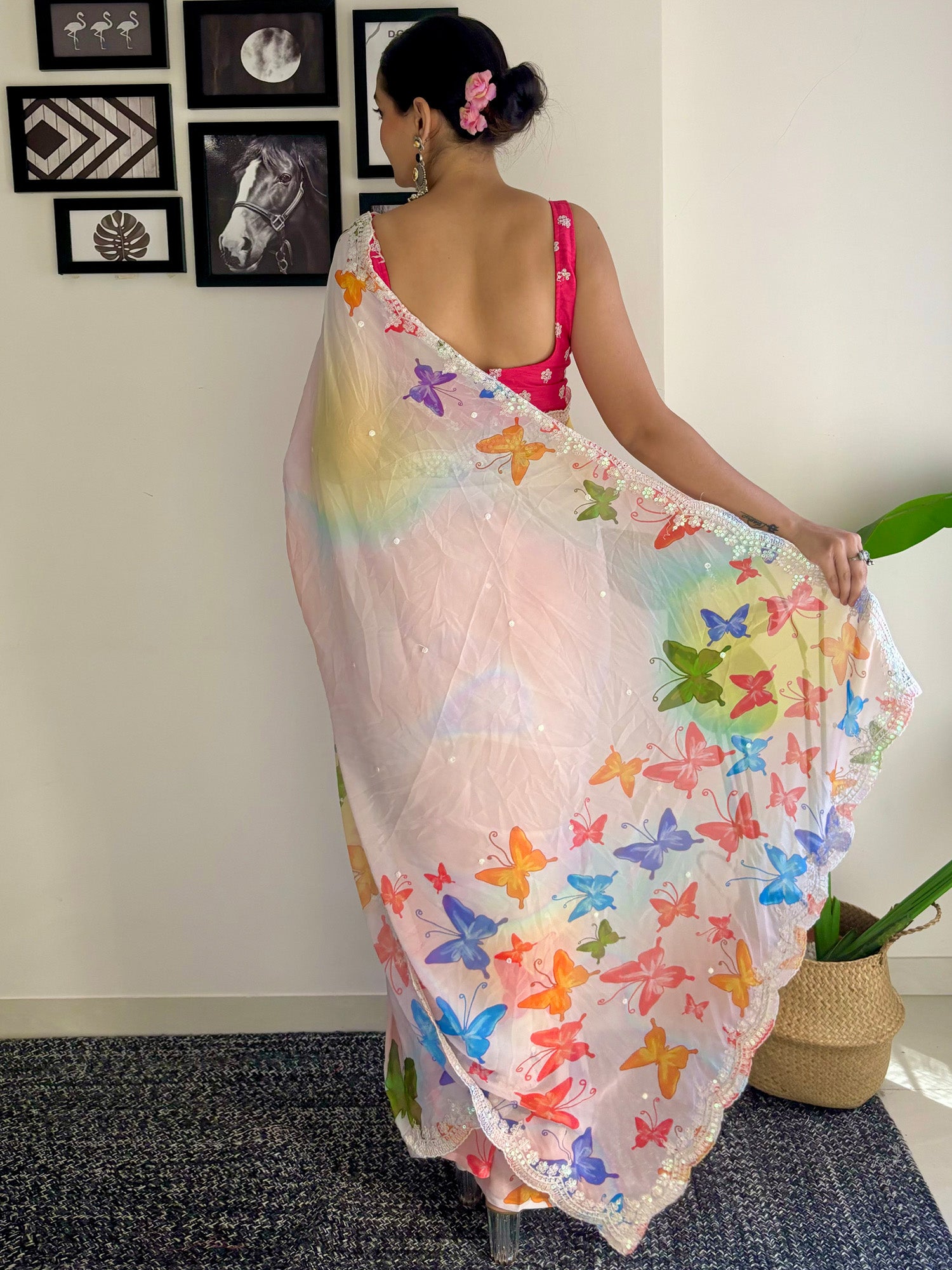 Women's Georgette Pink Embellished Designer Saree With Blouse Piece