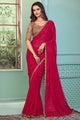 Women's Georgette Pink Embellished Designer Saree With Blouse Piece