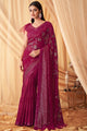 Women's Georgette Pink Embellished Designer Saree With Blouse Piece