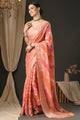 Women's Georgette Pink Woven Design Designer Saree With Blouse Piece