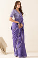 Women's Georgette Purple Printed Designer Saree With Blouse Piece