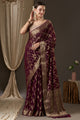Women's Georgette Purple Woven Design Designer Saree With Blouse Piece