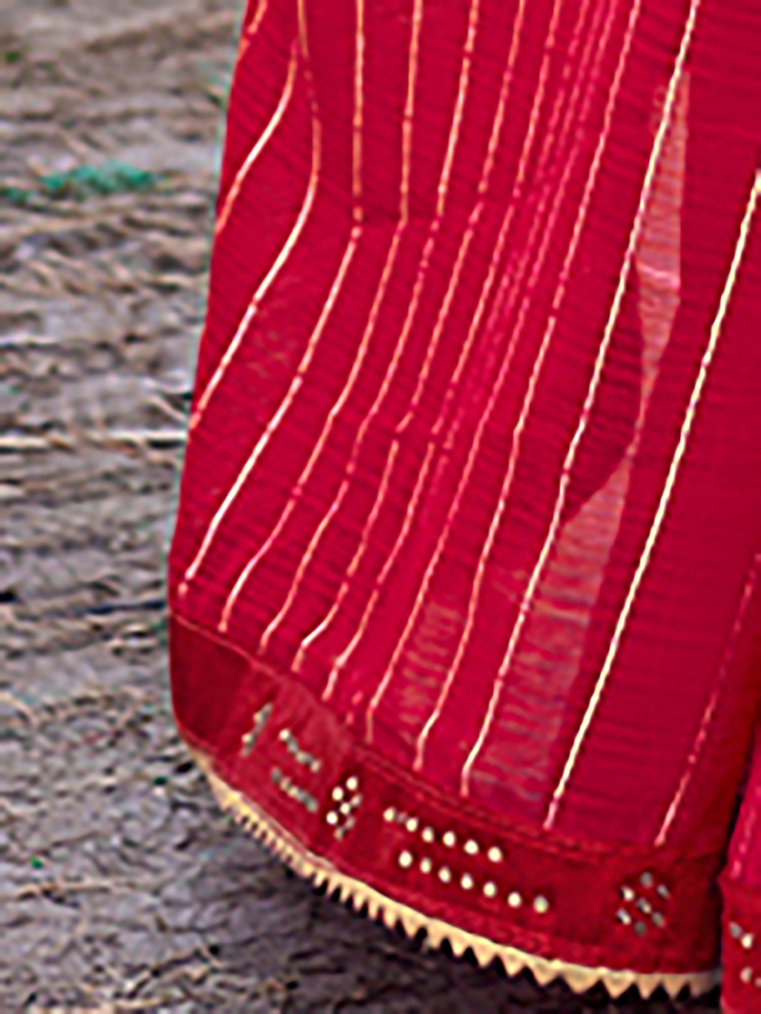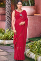 Women's Georgette Red Embellished Celebrity Saree With Blouse Piece