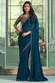 Women's Georgette Teal blue Embellished Designer Saree With Blouse Piece