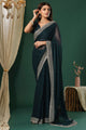 Women's Georgette Teal blue Embroidered Designer Saree With Blouse Piece